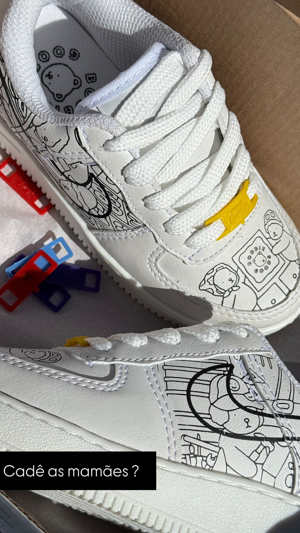O Baby Godi é aquele tênis que conquista no primeiro olhar! Com estampas em preto prontas para serem coloridas, ele permite que a criança solte a imaginação e crie seu próprio estilo. Confortável, leve e cheio de personalidade, é ideal para momentos de brincadeira e aprendizado.
