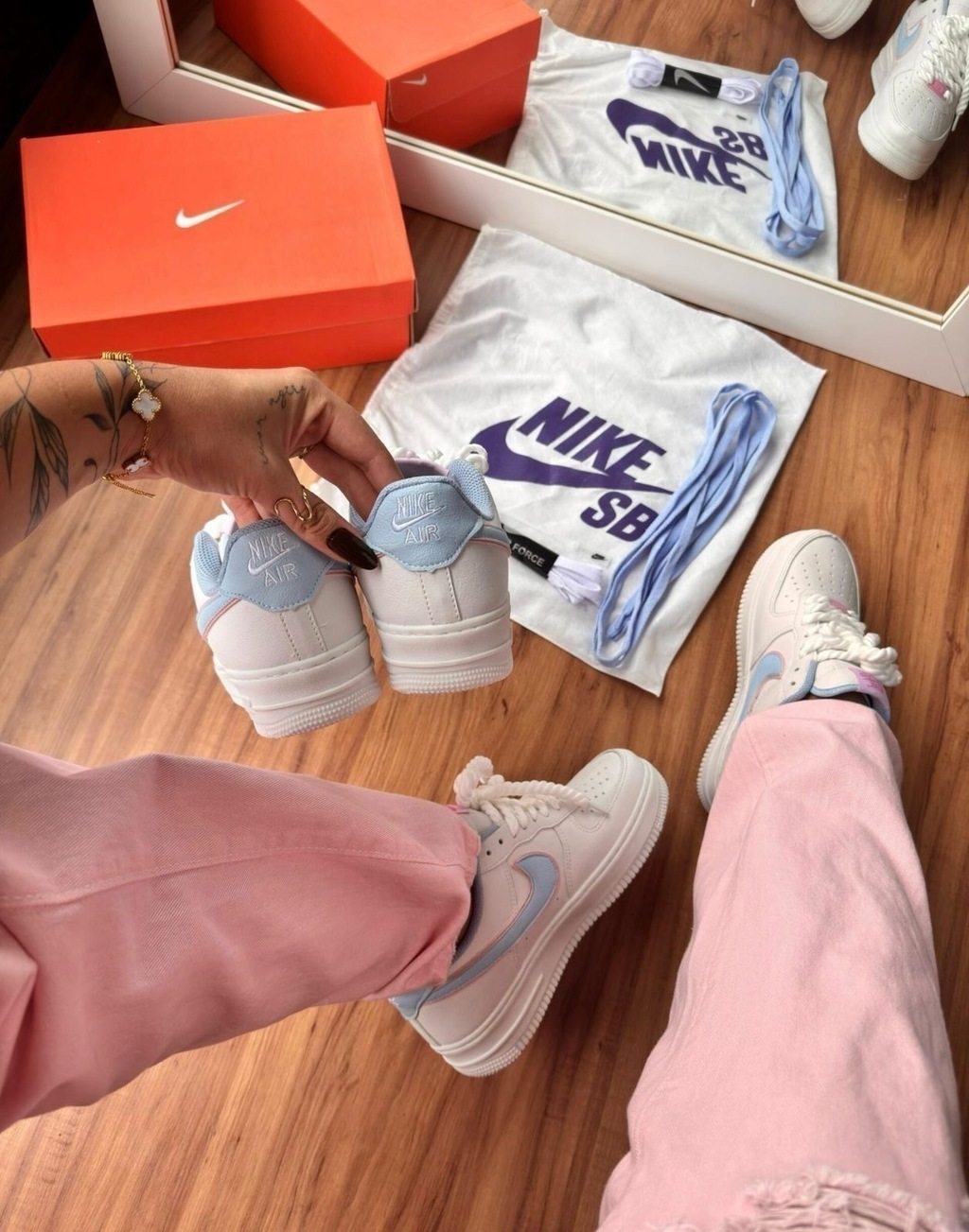 Clássico e estiloso, o Nike Air Force 1 ganha uma nova versão com toques de azul bebê e rosa, trazendo ainda mais charme ao modelo. Com cabedal em couro, perfurações que garantem respirabilidade e entressola robusta com amortecimento, é perfeito para destacar qualquer look — do casual ao urbano.